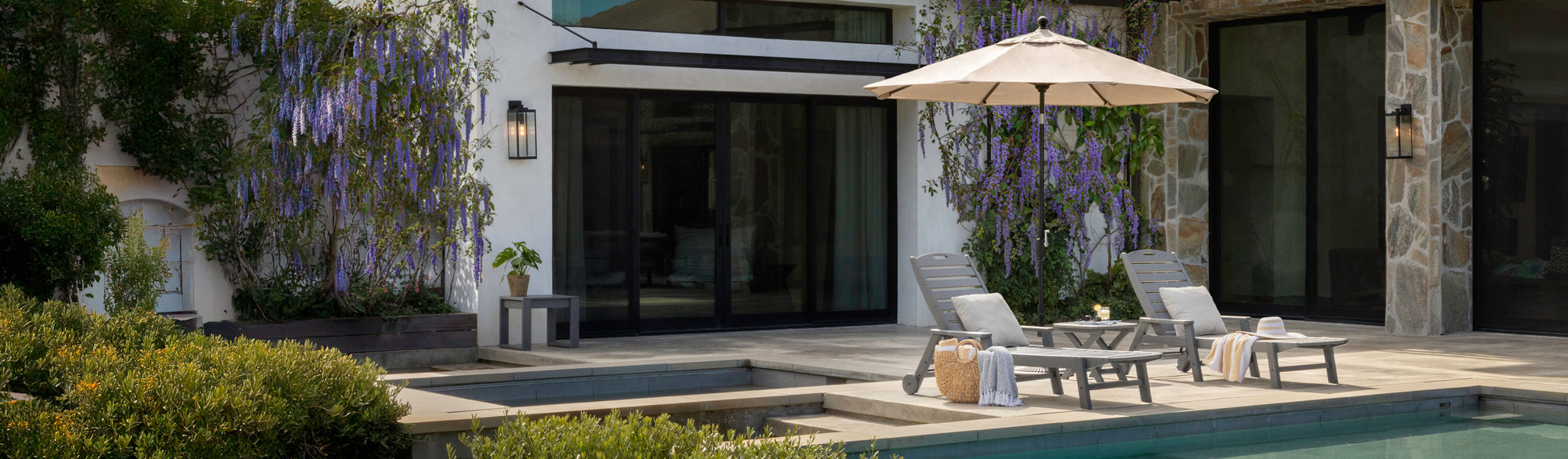 The Latitude Collection's clean, horizontal lines and sharp angles speak to bold shapes, while the spacious frames create a balanced yet striking aesthetic that makes your outdoor space feel open and inviting.