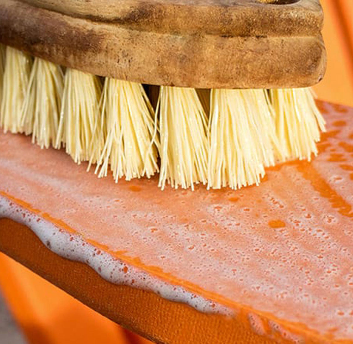 - Scrub the surfaces using the soft-bristle brush to loosen any dirt or debris.